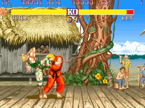 布蘭卡只要在跳起來踢了一腳之後馬上衝擊就會定住,這個BUG當年我們用過無數次。騙了老闆娘不少的遊戲幣啊!對於那時候的我們來說,白嫖兩三關就相當於賺了一枚遊戲幣了。