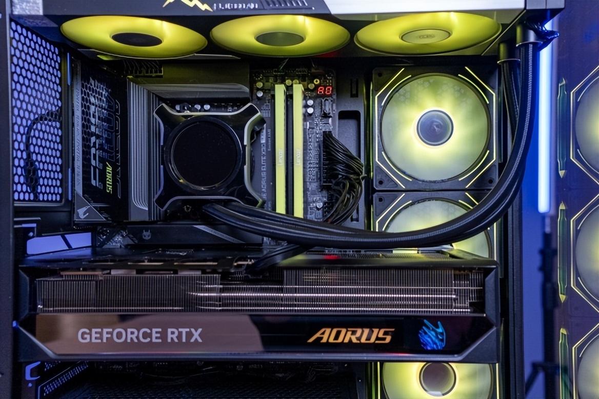 在散熱設計上,這款顯卡延續了 AORUS 家族標誌性的旗艦風之力散熱系統,通過大面積高密度散熱鰭片、多根高效複合熱管以及大面積均熱板結構,實現核心熱量的快速傳導與均勻發散。即便在長時間高負載、解鎖功耗的嚴苛場景下,核心溫度依然能被壓制在理想區間,同時風扇曲線經過深度調校,高負載下噪音控制極爲剋制,真正做到強性能、低溫度、超靜音三者兼顧。