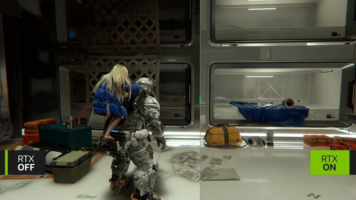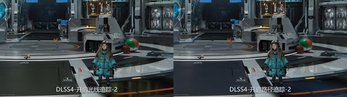 我們針對傳統光線追蹤與全場景路徑追蹤進行了直觀畫面對比,雖然遊戲整體科幻美術風格一致,但兩者在光影物理邏輯、材質真實感與畫面層次感上的差距一目瞭然。也正是在技嘉 RTX 5080 MASTER 16G 超級雕的強悍性能支撐下,DLSS 4與路徑追蹤才能真正發揮出顛覆性的畫質提升,讓光影精度、材質質感與動態光影表現實現質的飛躍,將最真實的次世代畫面完整呈現在玩家眼前。