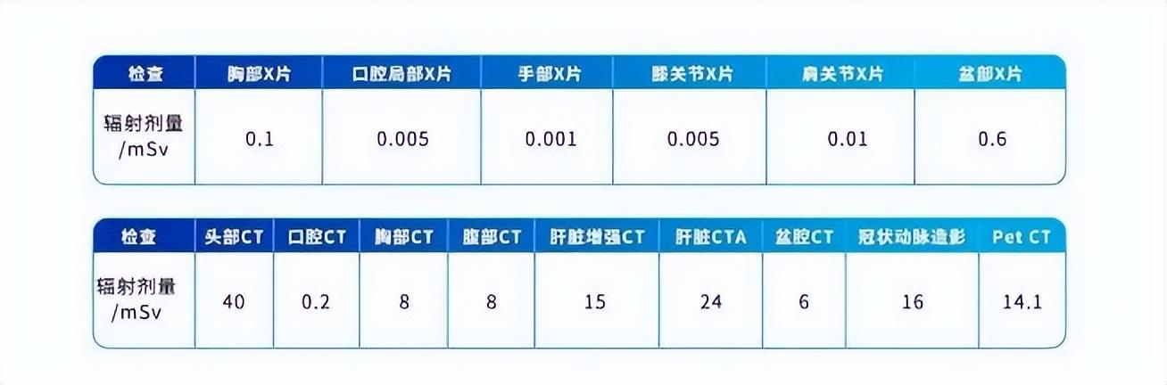 - 胸部CT(6–8 mSv)≈ 60–80張胸片