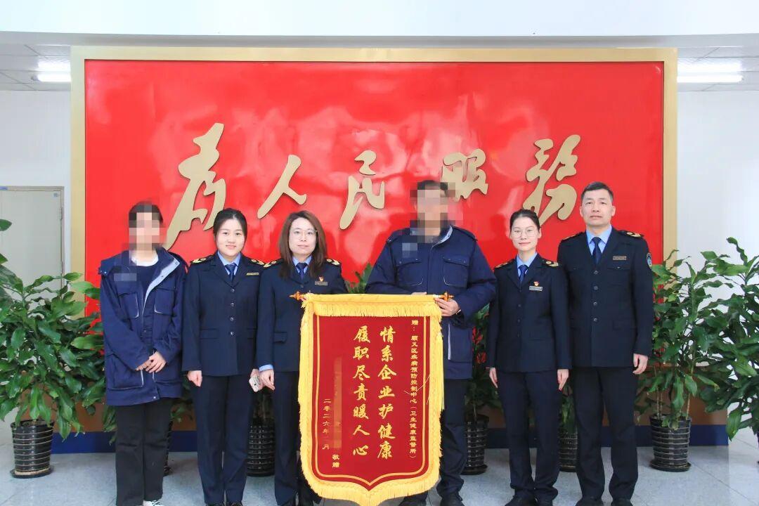 近日,某有限責任公司負責人一行專程來到順義區疾病預防控制中心(衛生健康監督所),將一面繡有“情繫企業護健康,履職盡責暖人心”字樣的錦旗,鄭重贈予執法人員梁田、王朔,以真摯質樸的方式,對中心近年來在企業職業健康工作方面給予企業的精準指導和大力服務表達誠摯謝意。
