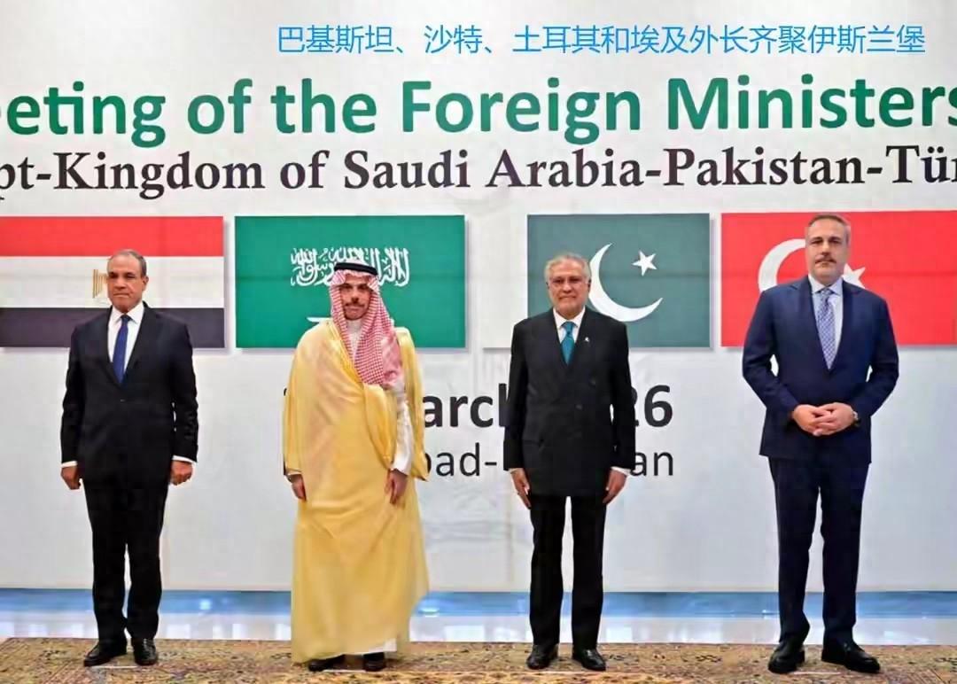 - 3月29日,四國外長在伊斯蘭堡舉行會議,討論緩和中東局勢與地區穩定路徑(新華社/新華網報道)。