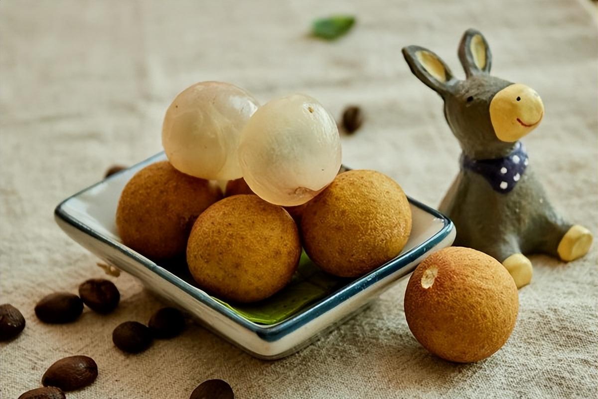 龍眼(桂圓)性溫,富含葡萄糖、蔗糖、B族維生素及鐵元素,果肉軟糯香甜,是傳統滋補水果。適量食用可補充能量,但含糖量和溫性程度較高,過量易引起不適,需按需適量選擇。