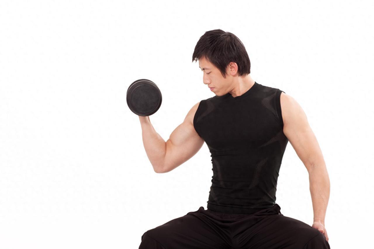 雙手各握一個啞鈴(重量以能完成10次爲宜),自然下垂。肘部貼緊身體,緩慢彎舉啞鈴至肩部,頂峯停留1秒,再緩慢放下,重複10-12次爲1組,做3組。注意避免身體前後晃動借力。