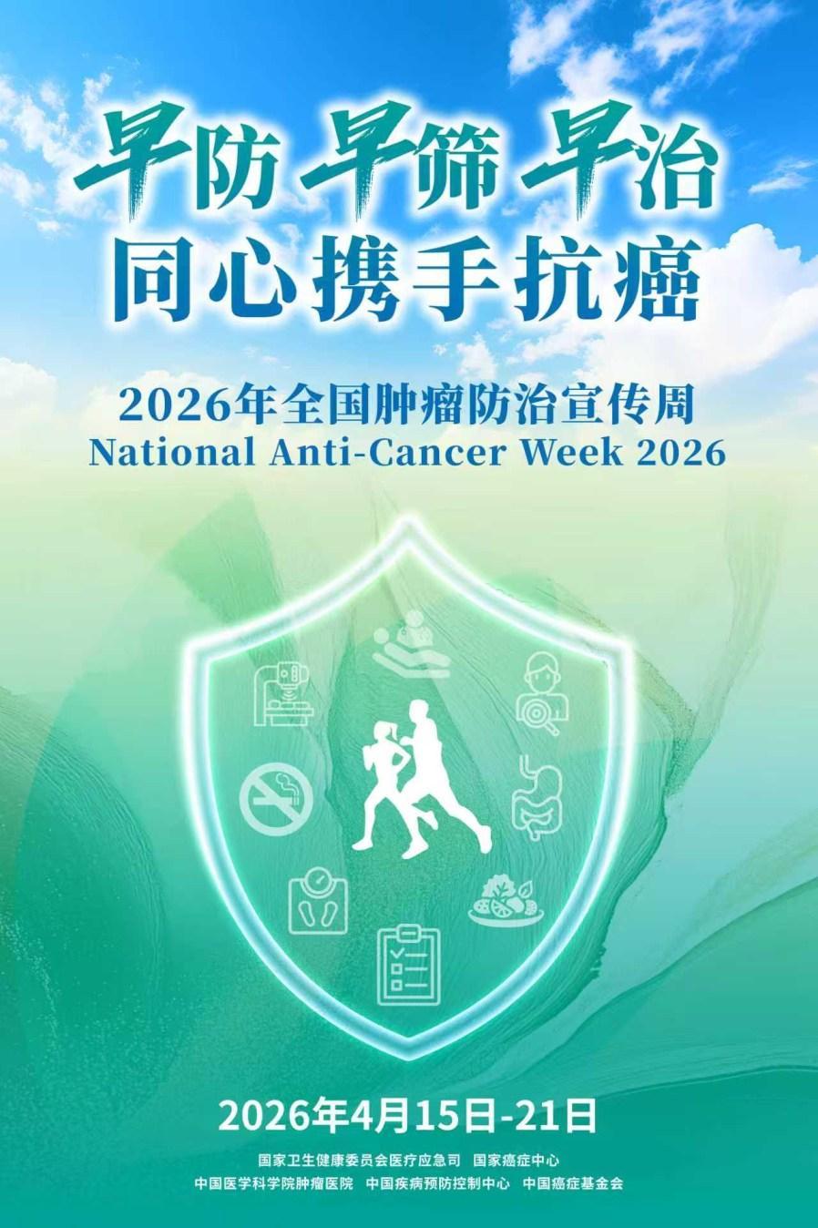 2026年4月15日至21日,是第32個全國腫瘤防治宣傳週,本屆宣傳週的主題是“早防早篩早治 同心攜手抗癌”,旨在將防治關口前移,普及科學防癌知識、倡導健康生活方式,聚焦高危人羣篩查,降低癌症發病率。面對我國每年新發癌症超400萬例的嚴峻形勢,每個人都應做自己健康的第一責任人,築牢自身健康防線。