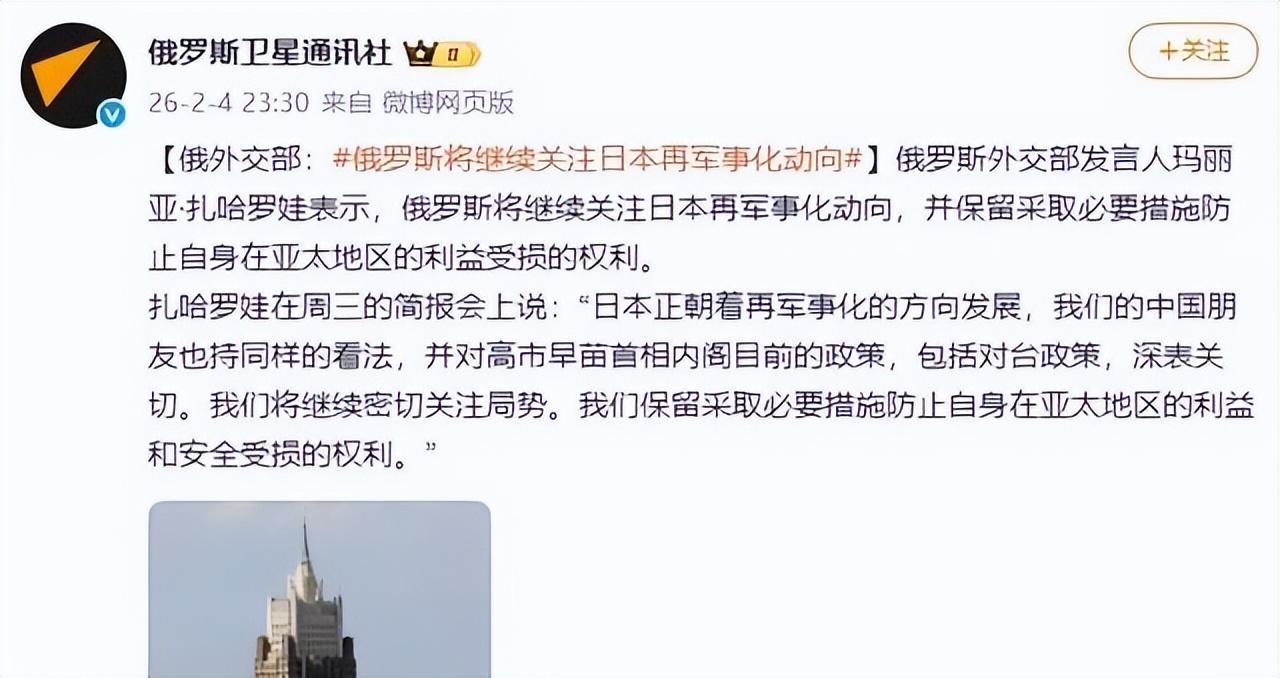 俄羅斯外交部回應稱關係困難,日本無視歷史事實,島嶼屬俄主權。高市的表態在選前激發保守派情緒,爭取選票。