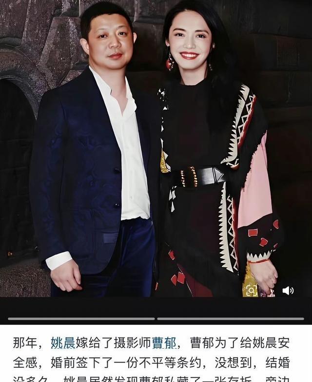 這份聲明迅速引發廣泛關注,因爲外界此前對兩人婚姻狀況瞭解有限。姚晨與曹鬱的這段關係始於2010年,當時他們在合作一部電影過程中結識。2011年3月,兩人戀情公開。2012年11月,他們在新西蘭舉行婚禮,儀式保持低調,僅邀請少數親友參與。此後,兩人共同參與多項影視項目,包括創辦一家專注藝術電影的影視公司。婚後他們育有兩個孩子,生活軌跡在公開報道中呈現出穩定合作的特徵。