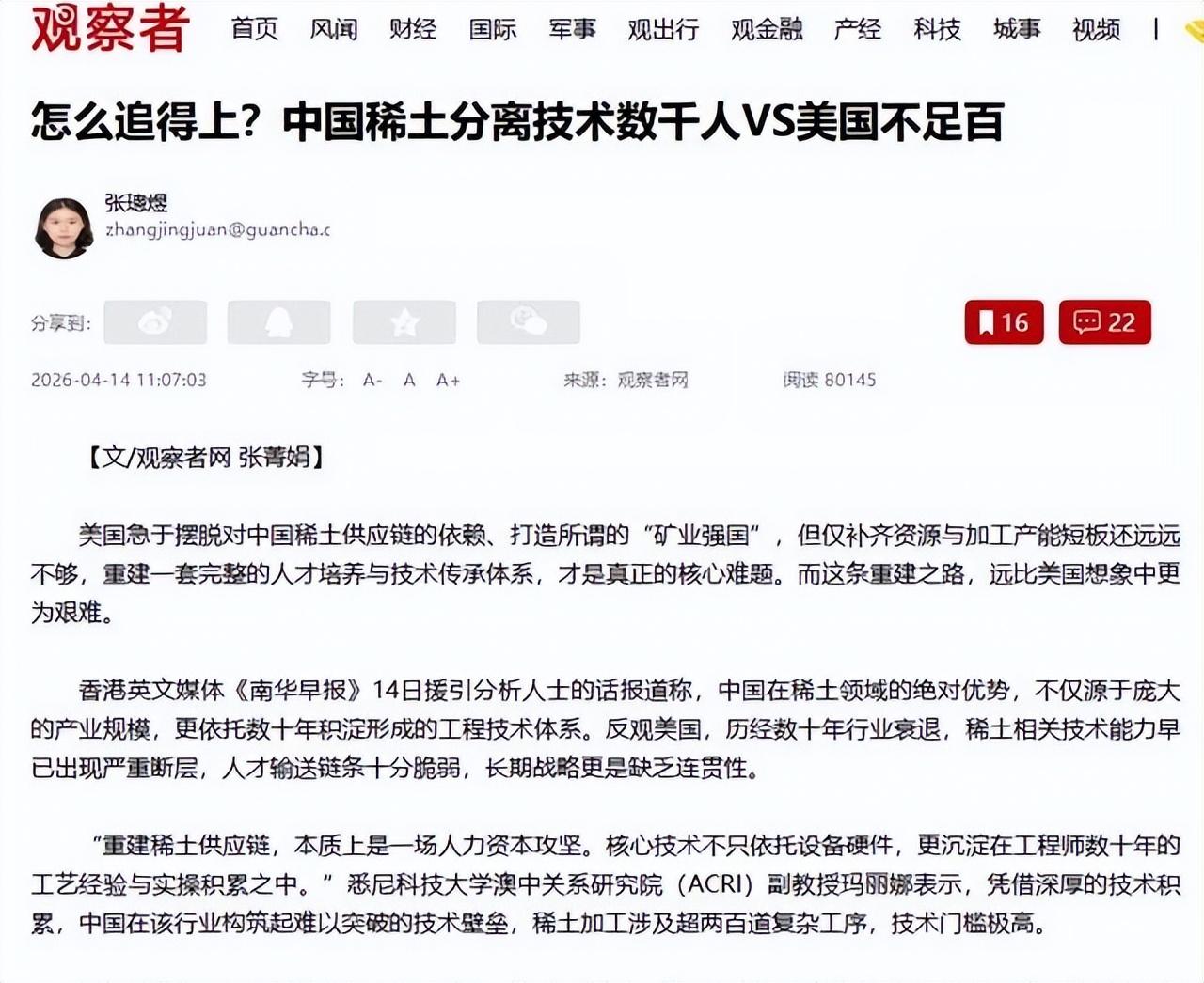 更讓美國人難以接受的是,這個"別人"正是他們長期打壓遏制的中國。當一個超級大國的軍事力量,從最頂尖的戰鬥機到最基礎的防空雷達,都離不開另一個國家提供的材料時,所謂的"軍事霸權"還能撐多久?美國媒體自己都坐不住了,《政治新聞網》罕見低頭認栽,直言"現在是中國說了算"。這話說得不情不願,卻道出了美國無法迴避的現實。
