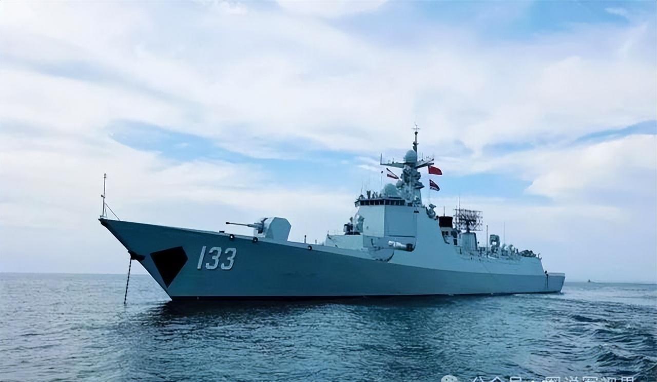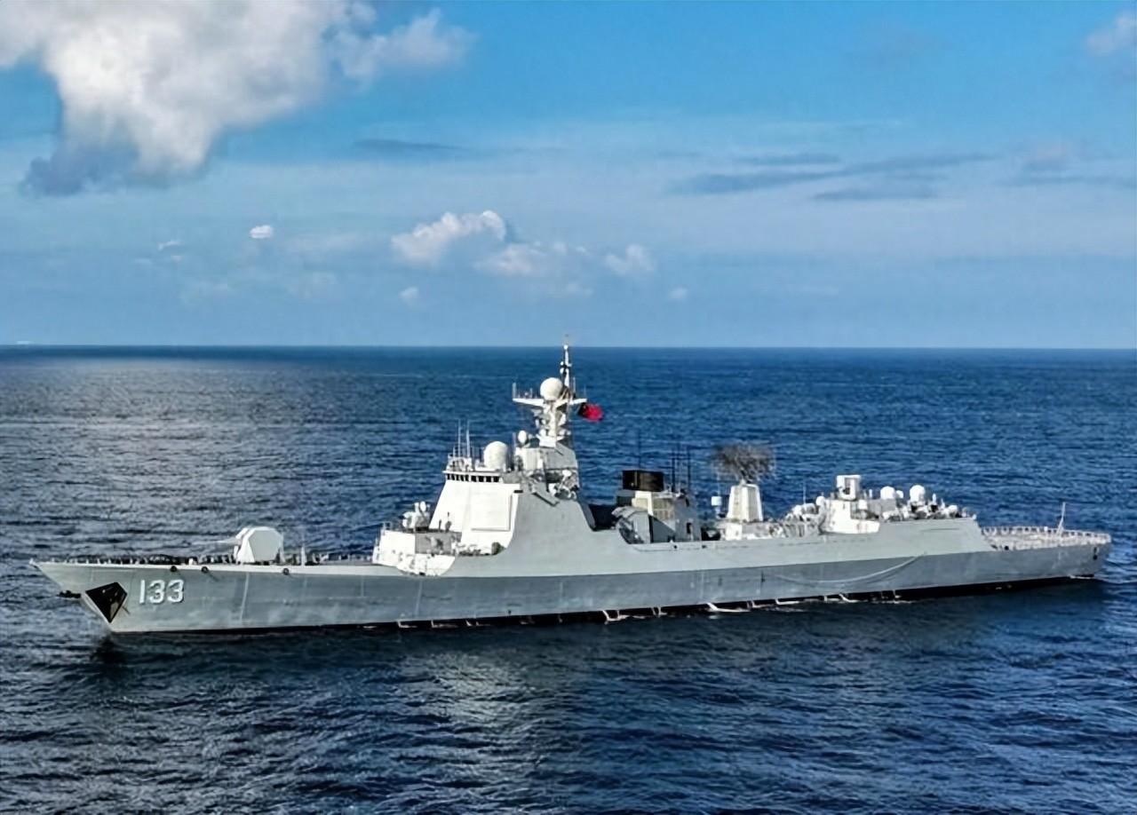 再來看此次出征的主角——133號包頭艦。"包頭"號導彈驅逐艦,舷號133,是052D型導彈驅逐艦加長版的第七艘。艦上設置了8座8聯裝總共64單元VLS裝置,均能垂直髮射海紅旗-9防空導彈、鷹擊-18A反艦導彈、魚-8反潛導彈、長劍-10對陸攻擊巡航導彈等彈種。其最大的改進之處就在於更換了可捕捉隱身戰機的517C米波反隱身雷達、艦尾直升機甲板拉長約4米,以便直-20上艦。包頭艦還換裝了最新型國產燃氣輪機,動力更強、航速更快。