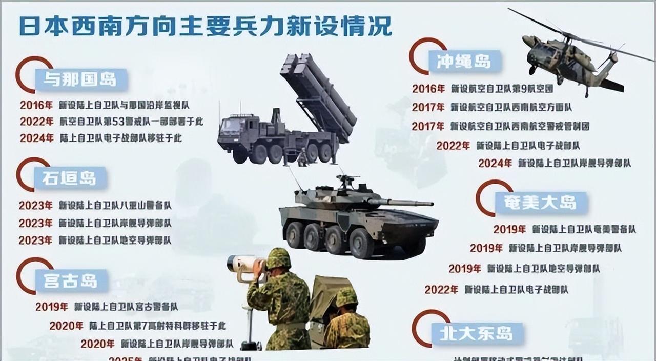 聊完這次行動本身,有必要展開說說日本在西南島鏈的軍事部署,因爲這纔是整件事的深層背景。據《解放軍報》2026年1月報道,日本早在2017年就將"西南航空混成團"升格爲"西南航空方面隊"。駐那霸基地的第15旅團也將於2026財年升格爲第15師團,編制或將由約2300人擴充至3900人左右,作戰職能從區域防禦轉向主動攻防。