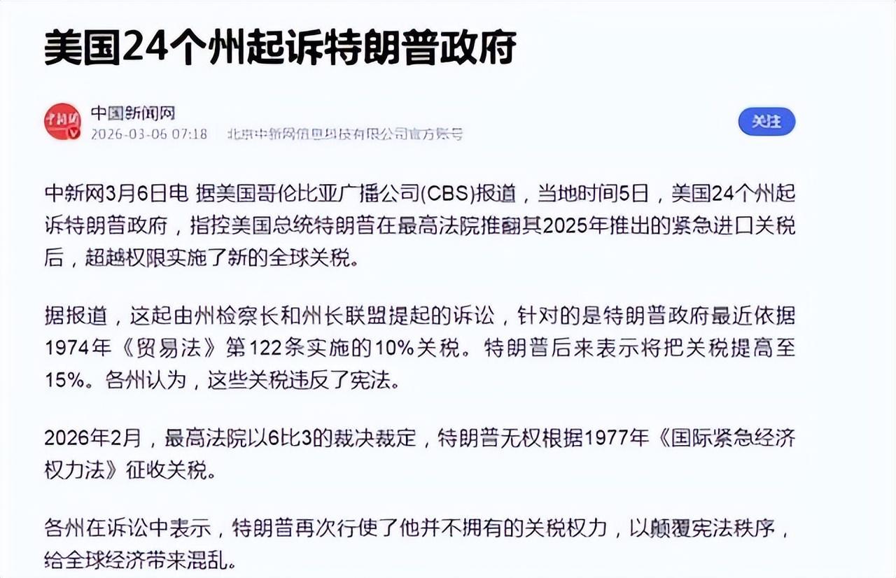 再看美國自身的狀況。關稅被最高法院推翻,得退1660億美元給企業;新關稅只能靠"臨時法條"撐場面,150天一到就得找新的法律依據;中東三艘航母壓上去,每天的軍費開支是天文數字;國內通脹居高不下,油價因爲中東戰事一路攀升。一項政策,說加就加,說撤就撤。今天合法,明天違法,後天再換一個法律依據重新來。