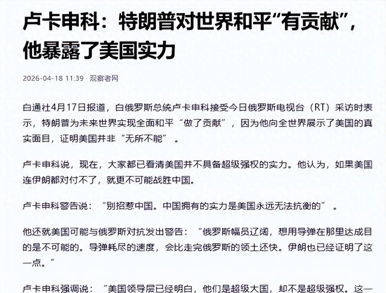 盧卡申科的一番話,之所以刺耳,不在於措辭多麼激烈,而在於他踩中了美國當下最不願被人戳破的那根神經。
