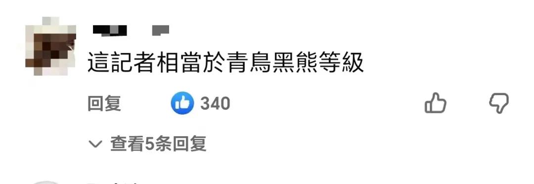 訪談視頻發出後,“倒贊”的數量遠超點贊數,大量網友湧入評論區。有網友留言表示“主持人質問受訪對象多過於訪問她”“第一次看專訪主持人那麼急於反駁來賓的言論,這應該是辯論會吧?”“自己說這不是政論節目,結果把自己搞得像綠營政論節目”“端出這樣一場專訪令人失望,有愧於國際媒體的聲名”。