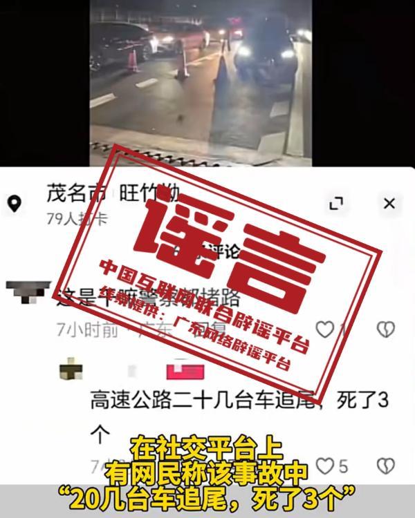 闢 謠 網傳“廣東茂名高速路多車連撞致三人死亡”系謠言