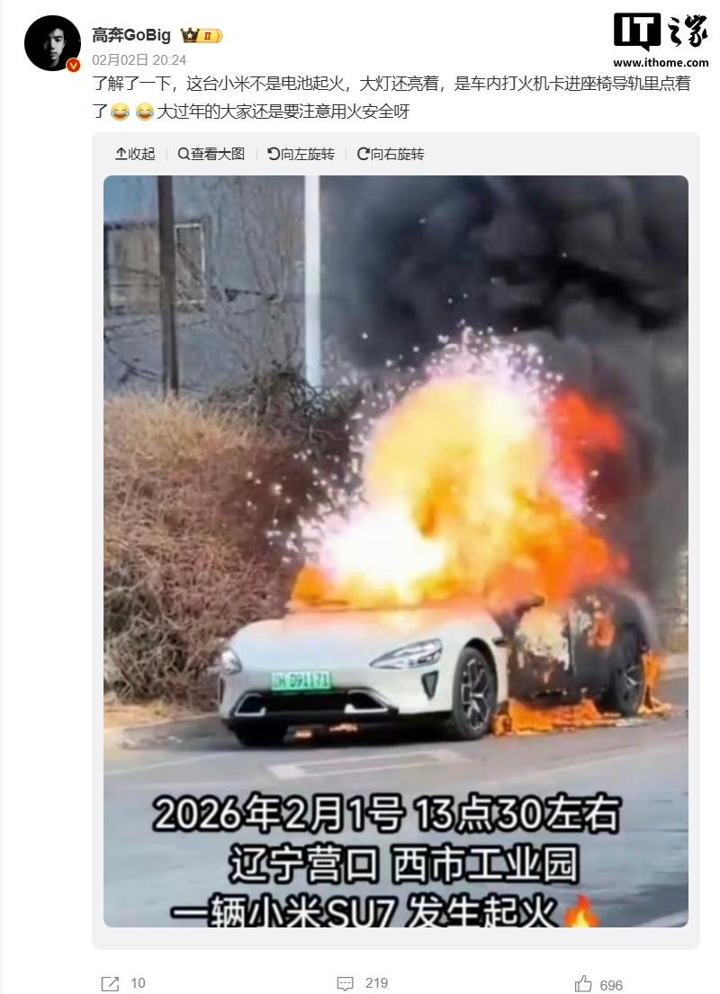 IT之家 2 月 4 日消息,小米公司發言人今日發文,回應了網傳的遼寧營口小米 SU7 起火事件,IT之家附全文如下: