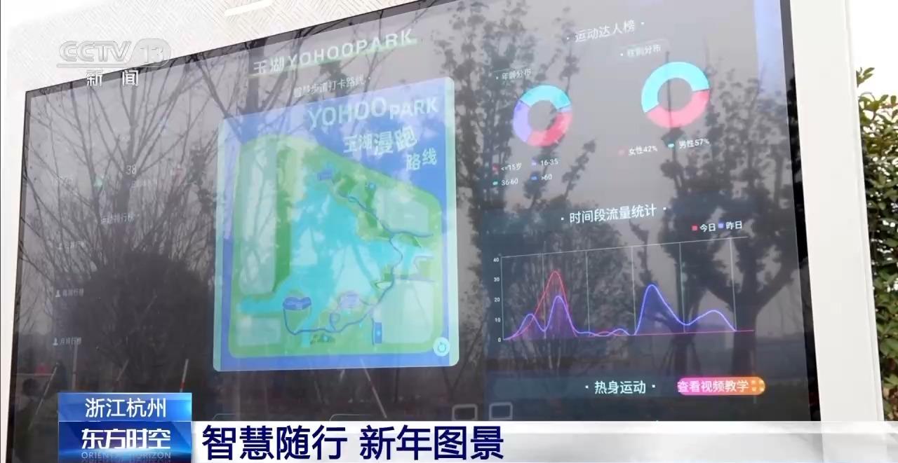 大家知道嗎?對着屏幕刷個臉,個人運動報告就生成了,能看到今天跑得多快、多遠,就連消耗的卡路里都算得一清二楚。公園裏免費Wi-Fi全覆蓋,座椅還能隨時給手機充電,這纔是真正的能量補給站。