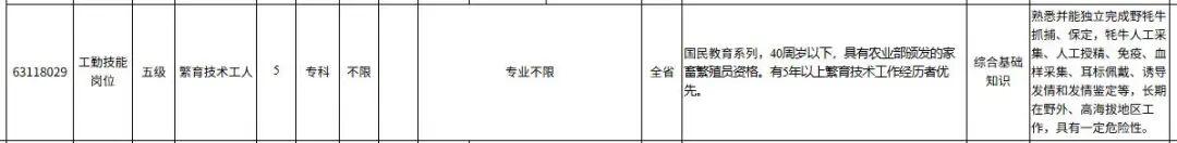 網傳截圖顯示,該崗位的綜合應用能力科目筆試類別是綜合基礎知識,崗位職責描述爲:熟悉並能獨立完成野犛牛抓捕、保定,犛牛人工採集、人工授精、免疫、血樣採集、耳標佩戴、誘導發情和發情鑑定等,長期在野外、高海拔地區工作,具有一定危險性。該截圖中,招聘的主管部門、用人單位等信息並未被截取到。在評論區,網友對“獨立抓野犛牛”提出質疑,並表示野犛牛體重五六百公斤,體長2米以上,要獨自抓捕野犛牛難度很大。