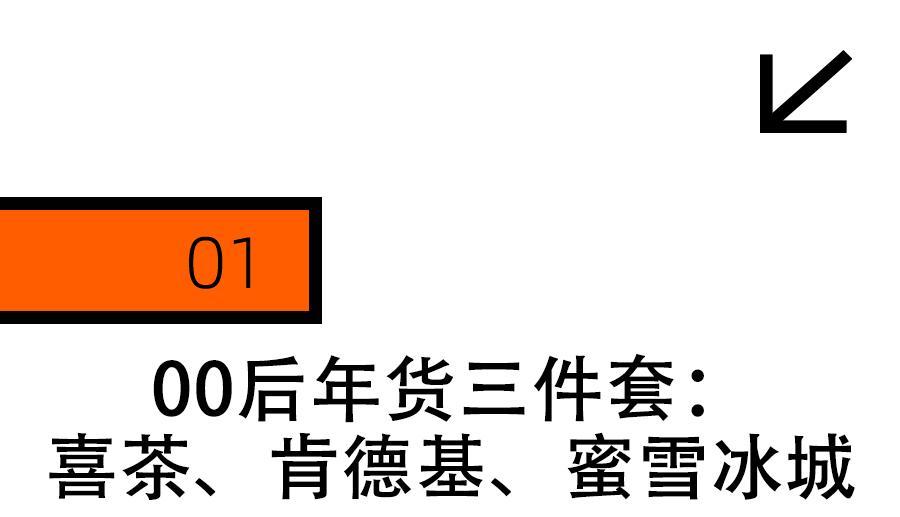 而這屆年輕人買年貨的首要宗旨,是自己喫得爽。頂級00後的“年貨三件套”,已經變成了喜茶、肯德基和蜜雪冰城。