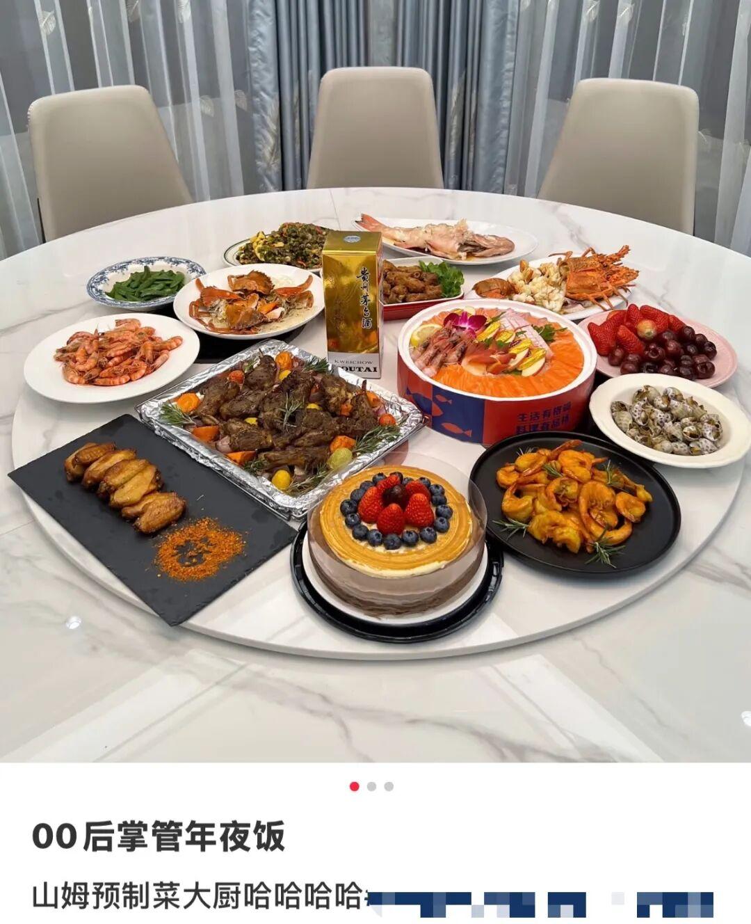 “00後的過年國宴,是盒馬買來的預製菜,無論你想喫松鼠桂魚還是獅子頭,都是一個微波爐能搞定的事兒;提前點好的肯德基全家桶,全家人當下酒菜喫;最重要的是一人得點一杯蜜雪冰城,家裏人提一杯時都得就着珍珠和芋圓了。”