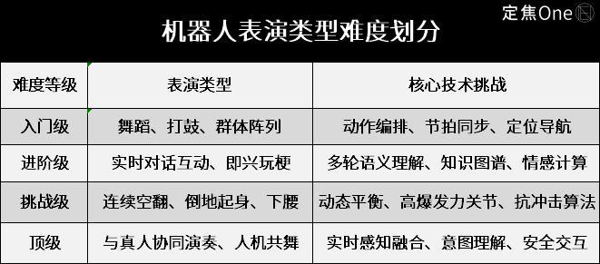 綜合多位從業者的說法,機器人表演的技術難度可以分爲四個等級。