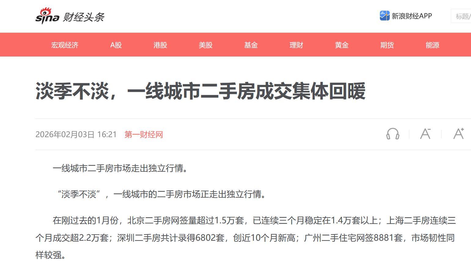 好消息是成交量確實在回升。北京1月二手房網籤15082套,連續三個月保持在14000套以上,同比增長21%。深圳1月二手房成交也創了近10個月新高。一線城市的交易活躍度在明顯改善。