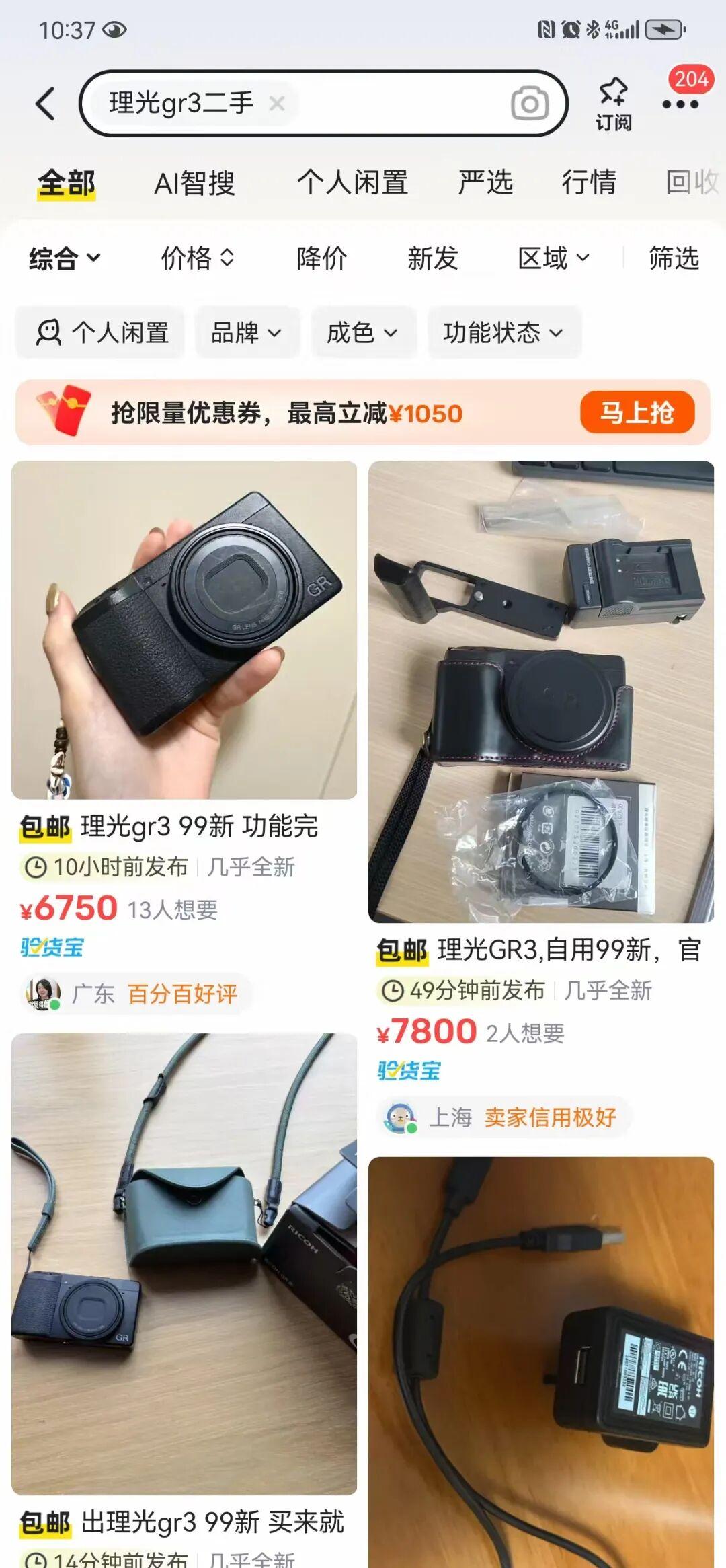 記者在二手平臺搜索發現,網上熱炒的一些相機型號價格存在不少差距,比如,佳能G12成色較好的二手貨售價4300元左右,但網上收購價格普遍1000元左右;理光GR3二手貨價格根據成色不同從6000多元到7800元不等,而同型號全新相機售價萬元左右。
