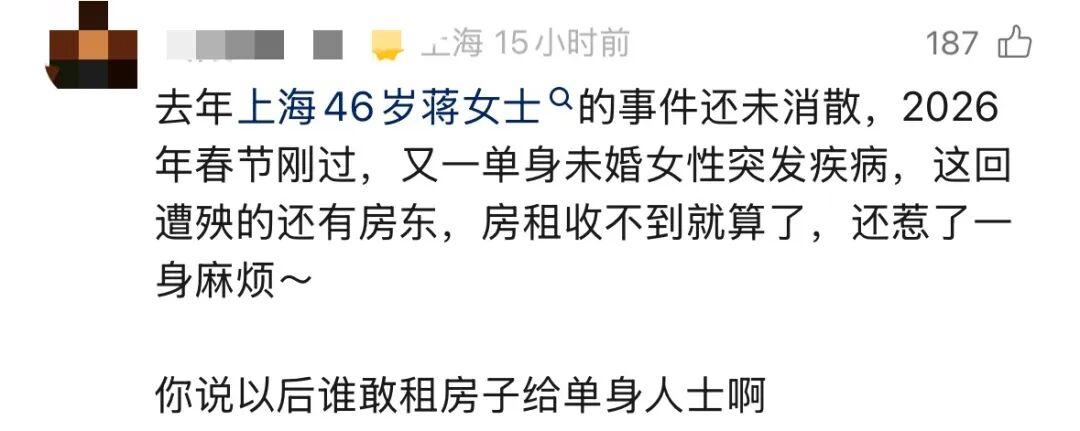 “我家房子租給了一位53歲的獨身女士,