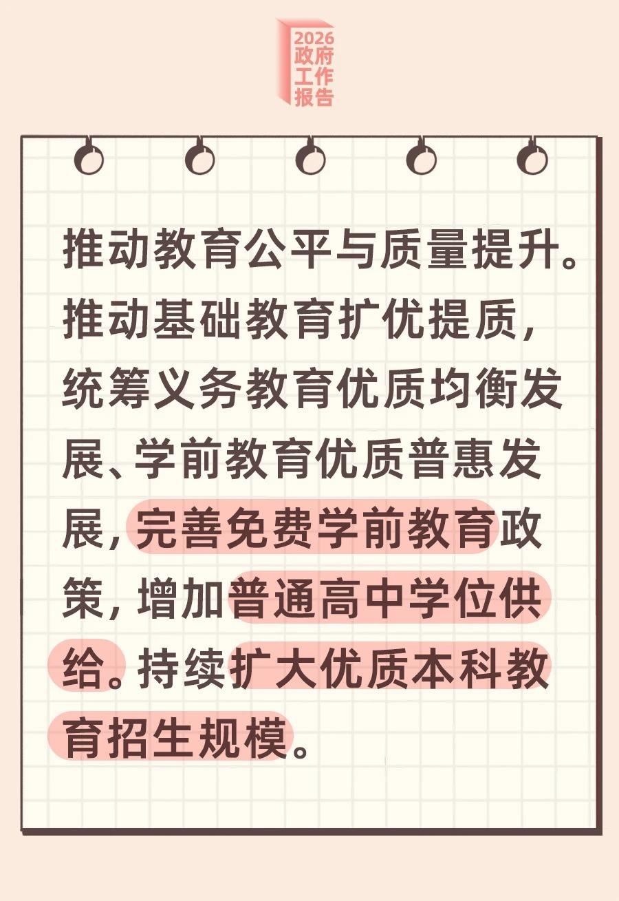 今年的政府工作報告明確提出“堅持民生爲大,加強普惠性、基礎性、兜底性民生建設”。這一波民生好消息,請查收。