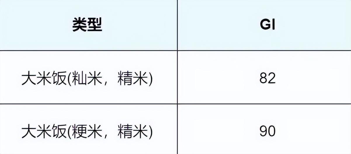 以米飯爲例,糯米飯的血糖生成指數(GI)高達 90,而普通大米飯的 GI 爲 82。