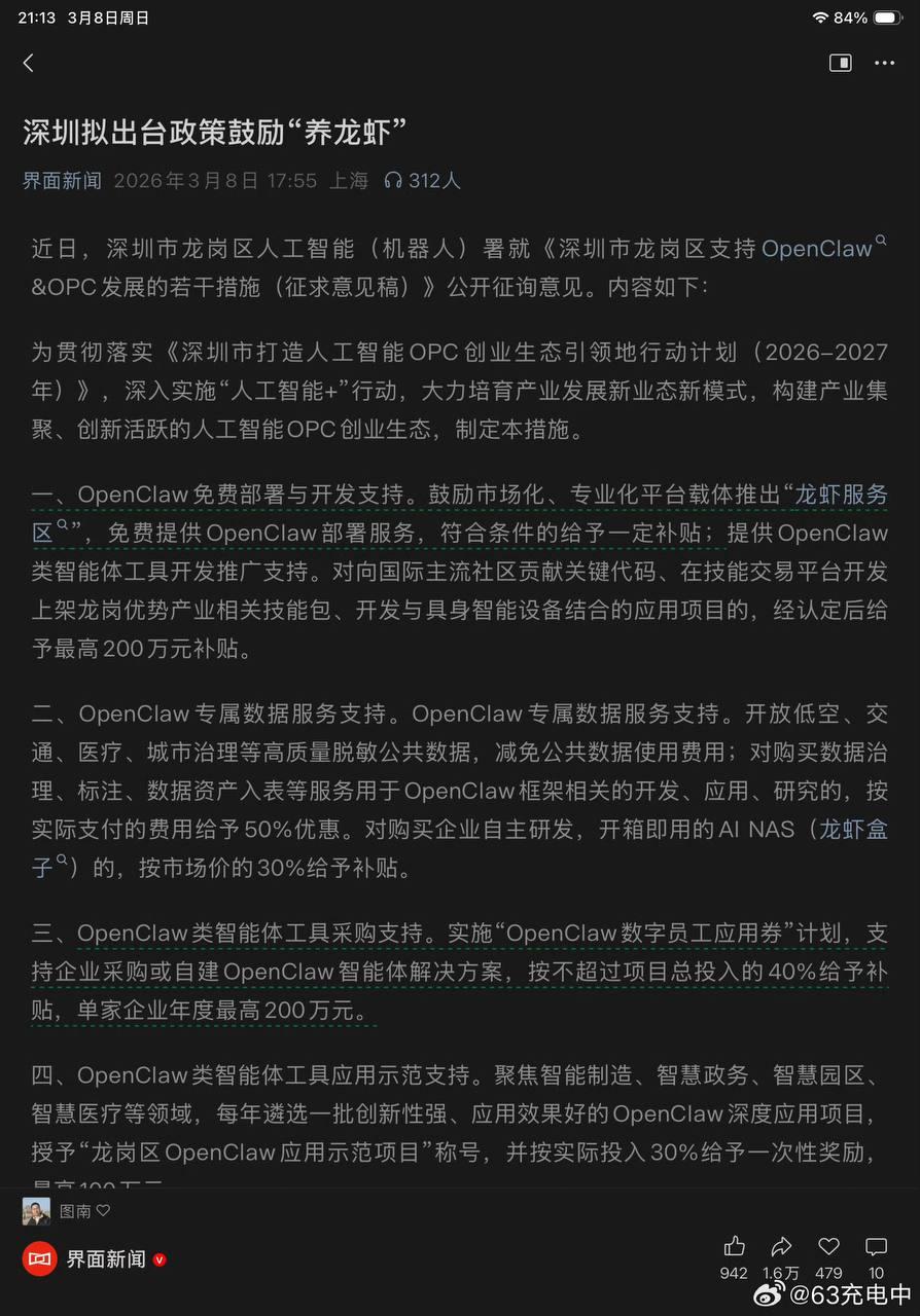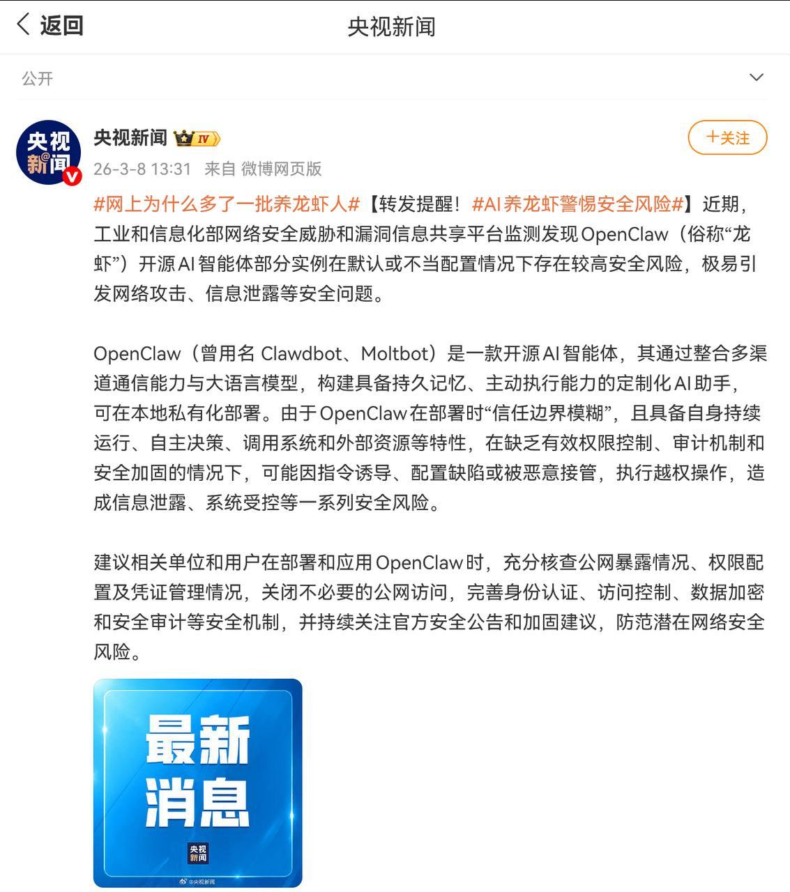 OpenClaw 最近確實火得有些離譜,互聯網公司的追捧先不說,深圳市龍崗區政府都提供了 OpenClaw 支持,工信部也注意到了這股熱潮,也提醒相關單位和用戶安全風險。