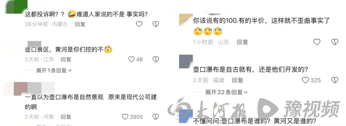 截至3月17日上午11時,該網友喊話母親河的原始視頻互動量已近12萬次,而公開道歉視頻的互動量也超過8萬次。景區的“硬氣”投訴引來不少網友反感。尤其是景區自稱“壺口瀑布是我司開發的旅遊景點”這一說法,引發大量質疑:“怎麼就侵犯了名譽權了,拍的鏡頭是祖國的大好河山!”目前,山西黃河壺口瀑布風景名勝區的官方抖音評論區、直播間均已“淪陷”。