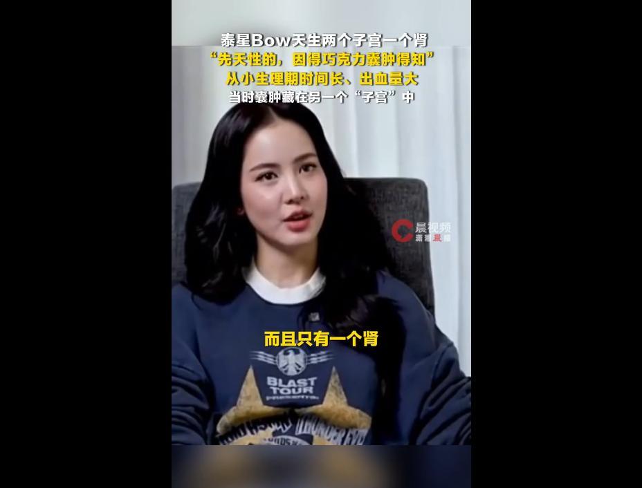近日,泰星Bow在節目中透露天生擁有兩個子宮,卻只有一個腎,這種極低概率的生理構造讓她從小過得很辛苦。她坦言生理期時間長、出血量大,幾乎每天都要用衛生棉,曾痛暈在浴室,被媽媽發現送醫後檢查出巧克力囊腫,當時囊腫藏在另一個“子宮”中。
