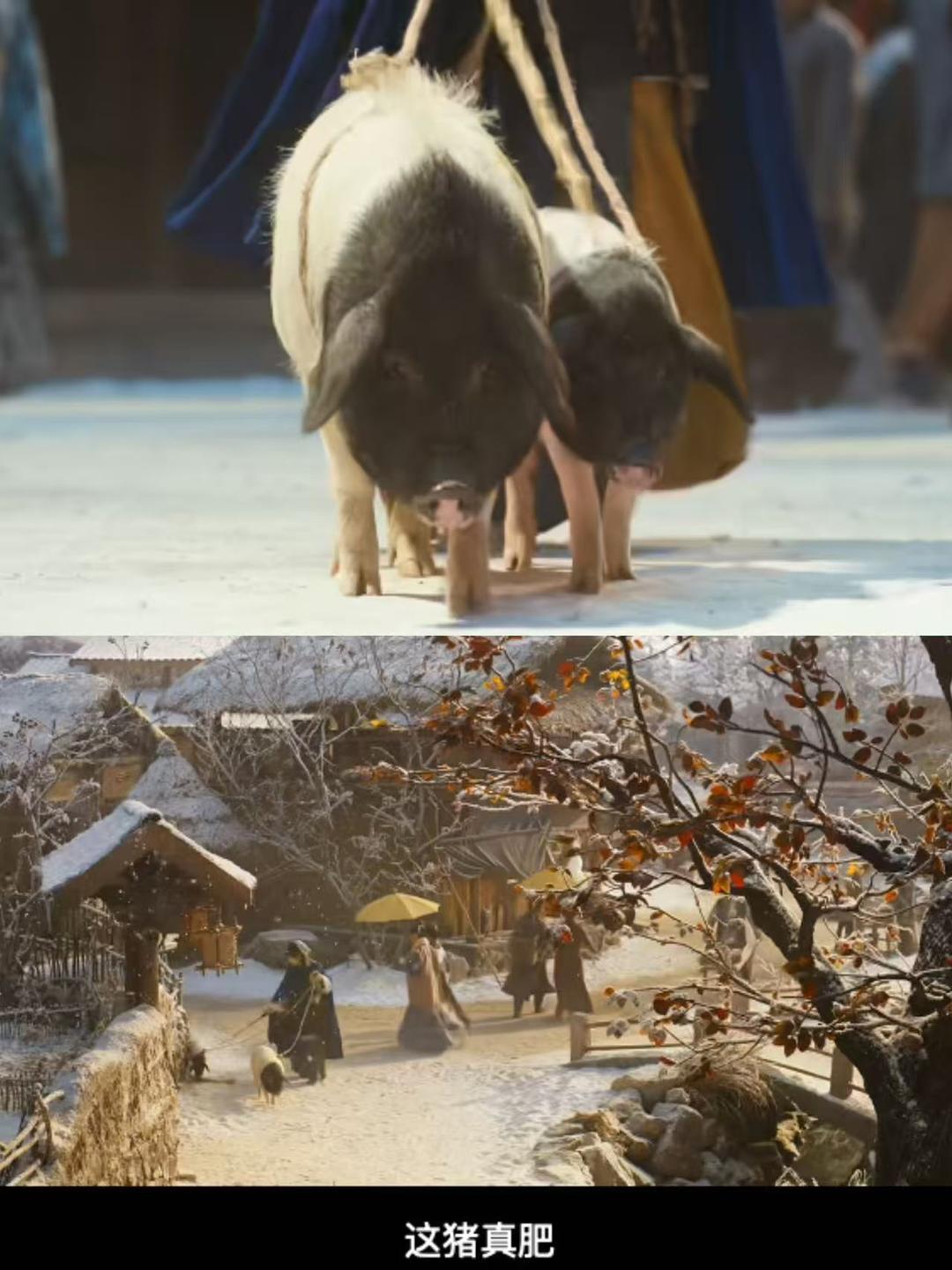 一頭正常年豬,通常在200斤~300斤左右。但《逐玉》的豬就不一樣。一隻年豬,看上去還不如一隻阿拉斯加犬大。小豬的顏色也長得極爲標誌,身體粉粉嫩嫩,只黑了頭和尾巴。