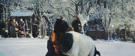 演員們的妝容和服裝永遠是精緻的,劉海永遠是蓬鬆的,上了戰場沾上的血跡,也只是恰到好處地點綴在眼下的。哪怕是被人打得向後飛起來,後腦勺着地,長髮都是得在落地的瞬間,均勻地揚起來再鋪滿雪地的。