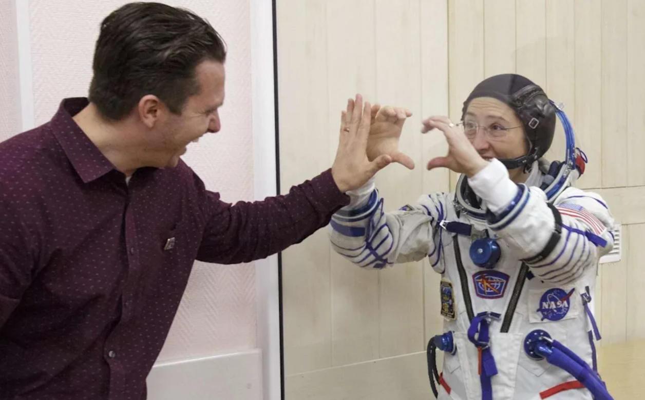 宇航員克里斯蒂娜·科赫和她的丈夫隔着玻璃表達愛意(2019年照片)