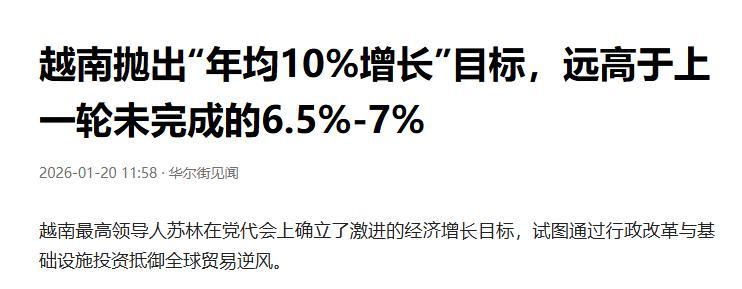 在這一過程中,中國與越南之間的基礎設施互聯、供應鏈合作和市場聯繫,正在成爲影響越南增長前景的重要因素之一。對於越南而言,10%的增長不僅是經濟指標,更是一場發展模式的檢驗。能否成功,還需要時間給出答案。