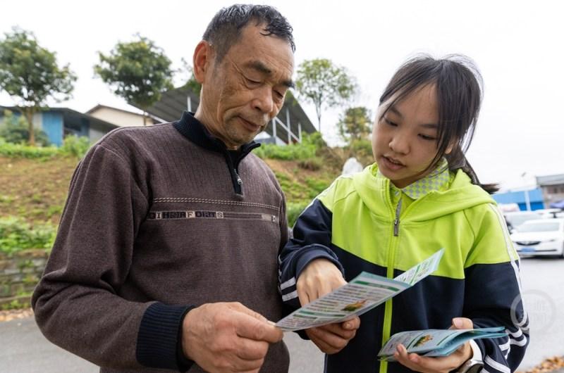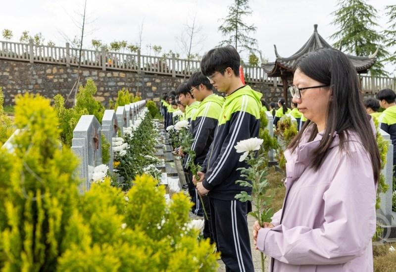 活動中,同學們還向周邊羣衆發放《文明祭祀 綠色緬懷》倡議書。