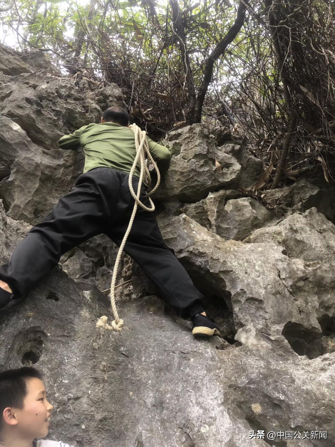 追尋先人的足跡在廣西不是那麼容易做到的。你除了得懂得利用竹竿過溪流,還得會在90度垂直的崖壁開鑿出一條通天之路。