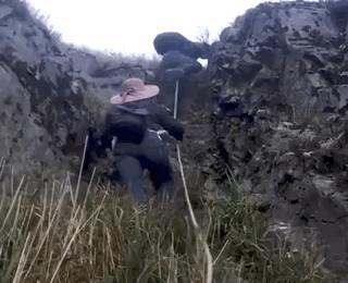 重裝上陣,跋山涉水,遇到懸崖峭壁,直接變成攀巖健將,而且玩的是無保護攀巖。