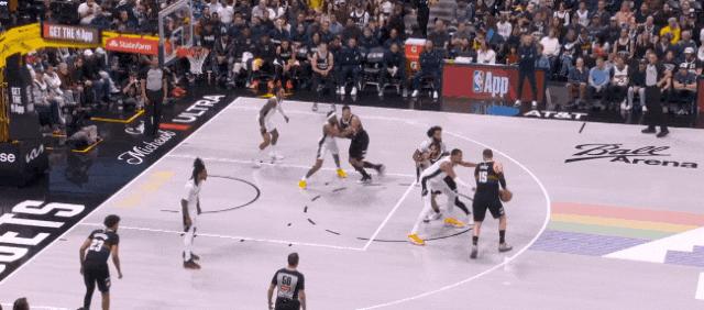下一回合,約基奇和穆雷招牌遞手,穆雷投了福克斯。