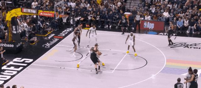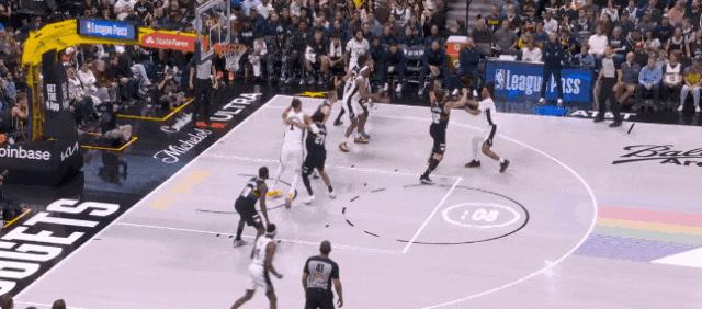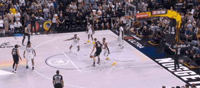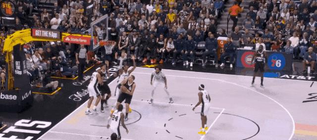 約基奇最後一個盲側弱切強,在文班沒注意時接球,轉身輕拋,第40分。又是巧打。