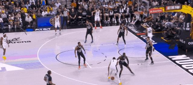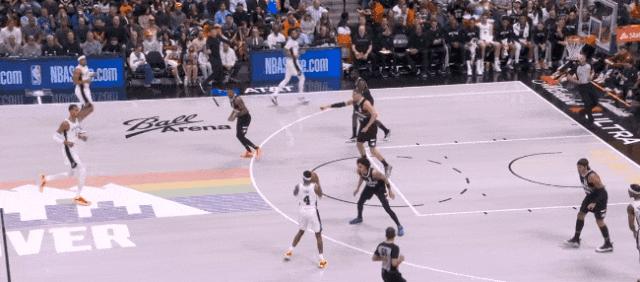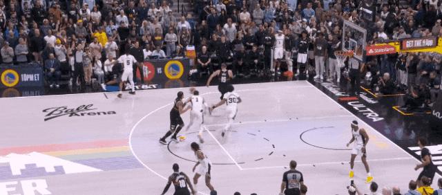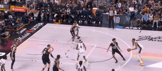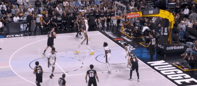 第二節開始半分鐘,文班已經9個罰球:掘金不用約基奇對他了,半繞前合圍。於是哈珀和福克斯利用文班在弱側/拖車的空位反擊上籃,文班再面筐突分巴恩斯,領先到12分,打停掘金。