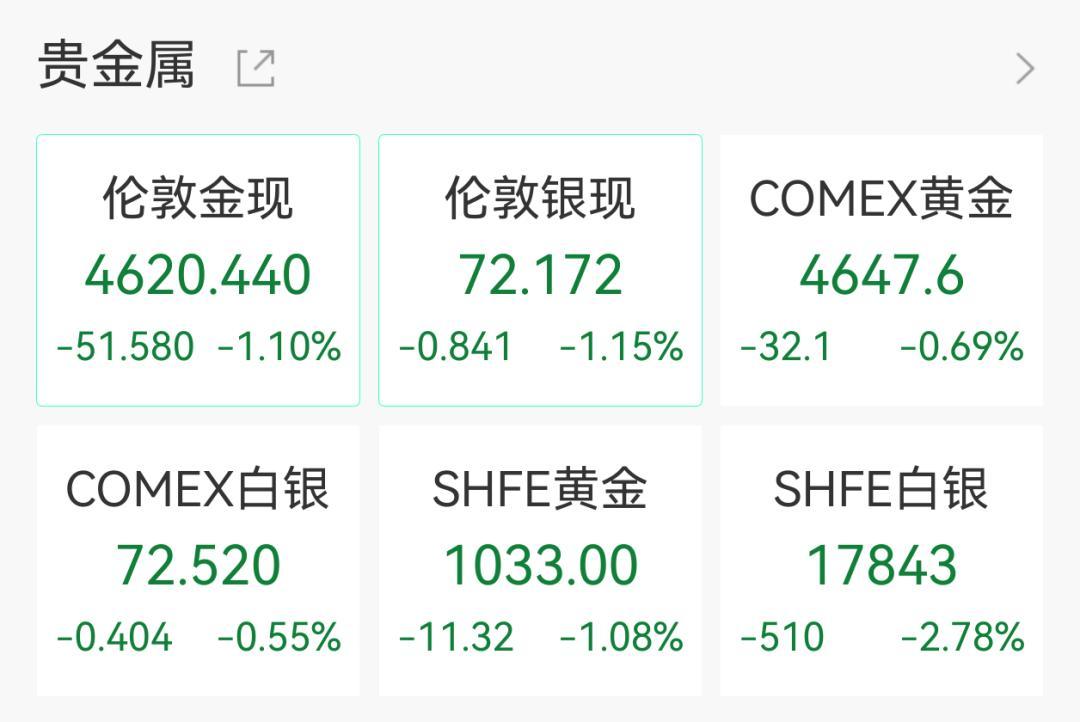 4月6日早盤,國際貴金屬下挫,截至發稿,現貨黃金、現貨白銀均跌超1%。原油方面,WTI原油期貨走高,截至發稿,漲0.83%報112.47美元/桶。