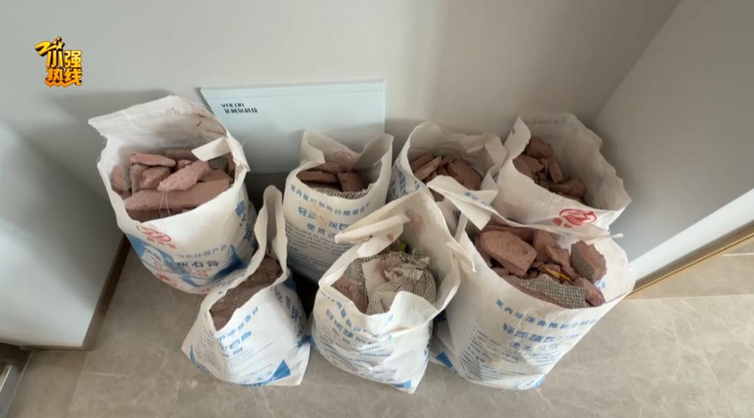 記者在現場看到,鍾女士家中主臥和次臥的兩面牆被砸開了,入戶門口,還整齊地擺放着六個袋子,裏面都是被砸下來的磚塊。“通過小區管家瞭解到,是小區工程部把我們的牆砸壞的。我不清楚爲什麼來砸牆,也不清楚是怎麼進來的。可能是管家或者誰告訴他們的,這套房子剛買,之前的密碼我們還沒有改。”