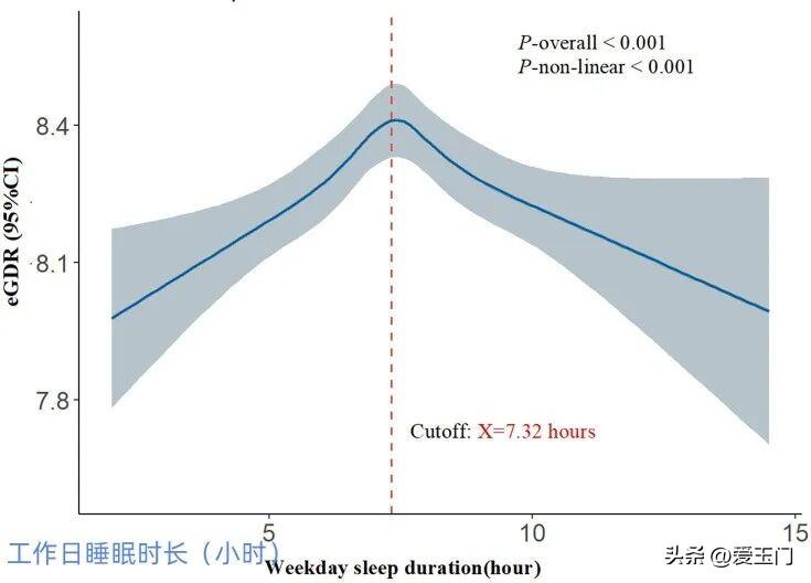 研究人員發現,工作日的睡眠時長與我們的代謝健康之間,並不是簡單的“越多越好”,而是呈現一條倒U形的曲線。簡單來說,就是有一個最佳的“黃金時長”,睡少了不行,睡多了也不好。而這個黃金分割點,恰好就是7.32小時,也就是7小時18分鐘。