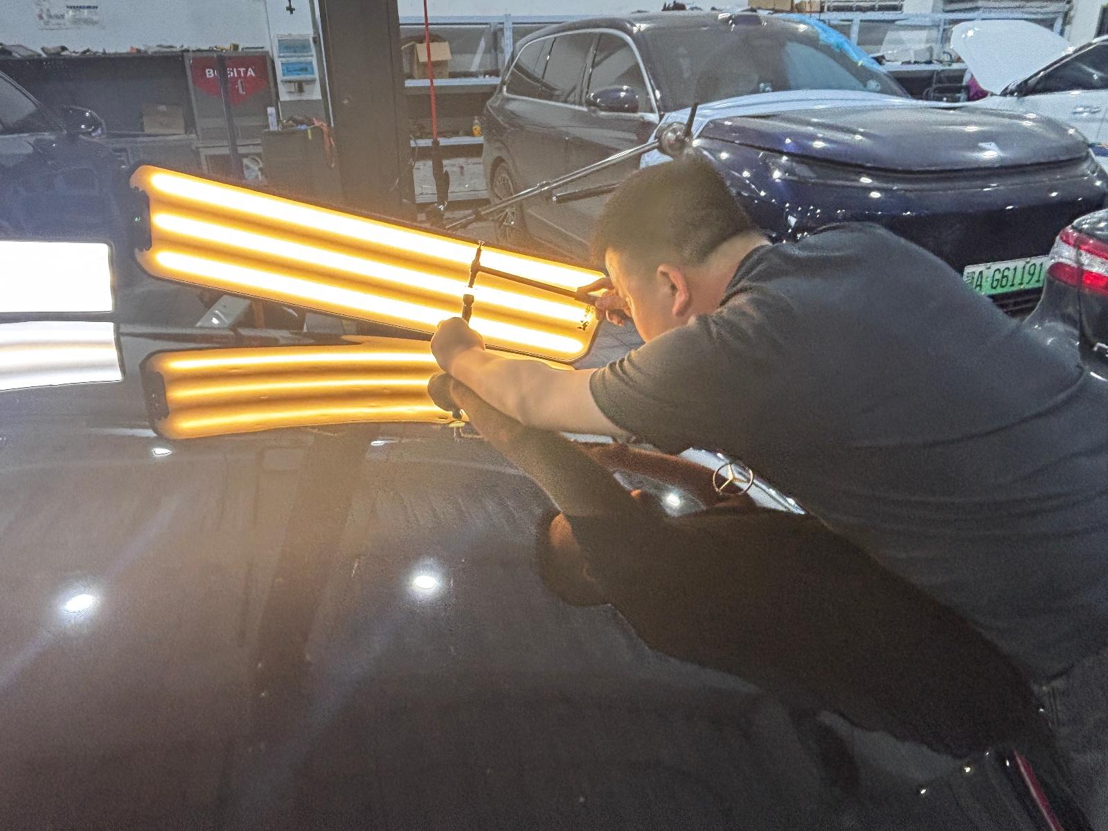 店員爲客戶修復冰雹坑。圖/九派新聞 蔡曉萱