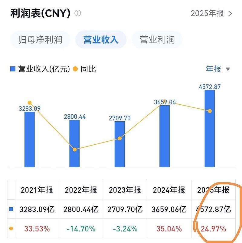 2025年,小米交出了“史上最強成績單”,總營收大增25%來到4573億元,淨利潤大增43.8%至約392億元,這就直接改變了市場之前對小米“低毛利公司”的舊有認知:今天的小米,已經躋身盈利能力逐步改善的科技公司。