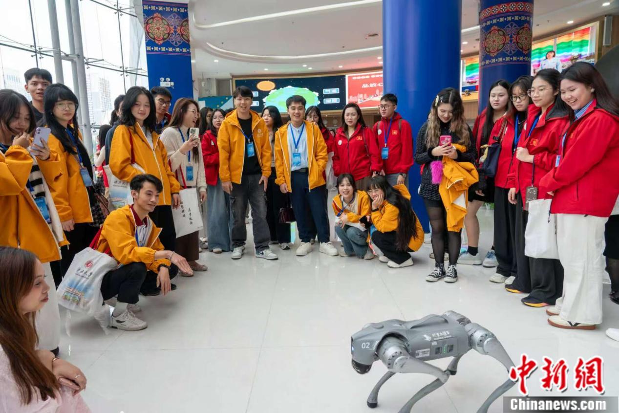 2025年12月,越南師生參加廣西大學國際學生AI研學營,觀看智能機器狗表演。廣西大學供圖