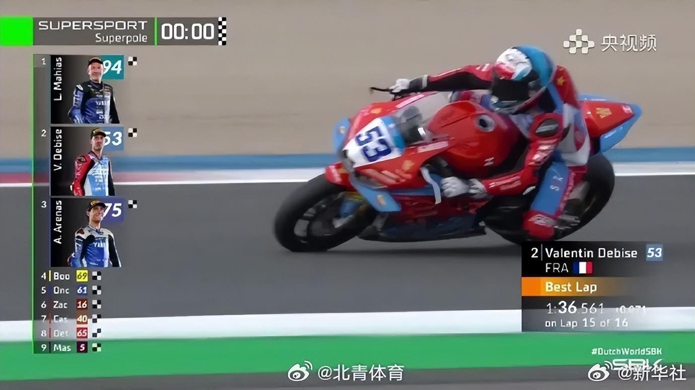 當地時間4月17日,2026世界超級摩托車錦標賽(WSBK)荷蘭站中量級(WorldSSP)組別中,張雪機車的53號車手瓦倫丁·德比斯駕駛張雪機車820RR-RS,在排位賽中取得第二名的成績。