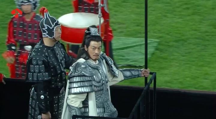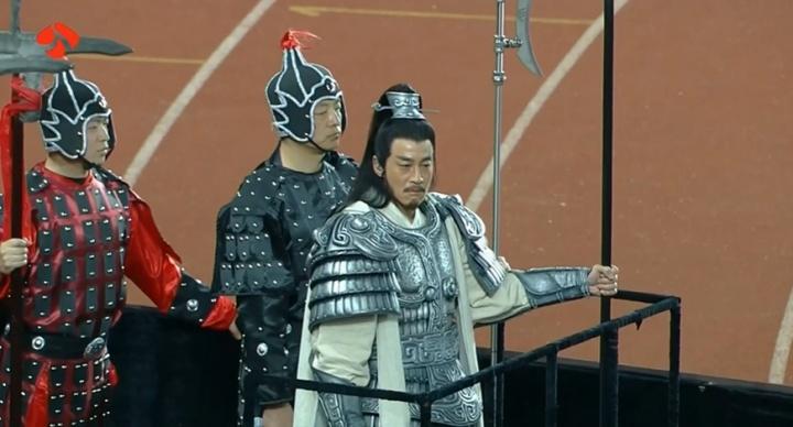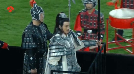 賽前暖場秀,演員何潤東以“項羽本羽”驚喜登場。爲呼應“項羽故里”,團隊特邀《楚漢傳奇》戰甲製作班底復刻霸王甲冑。何潤東身披“霸王戰甲”,乘古代戰車、執長戟繞場一週,重現“霸王迴歸”。